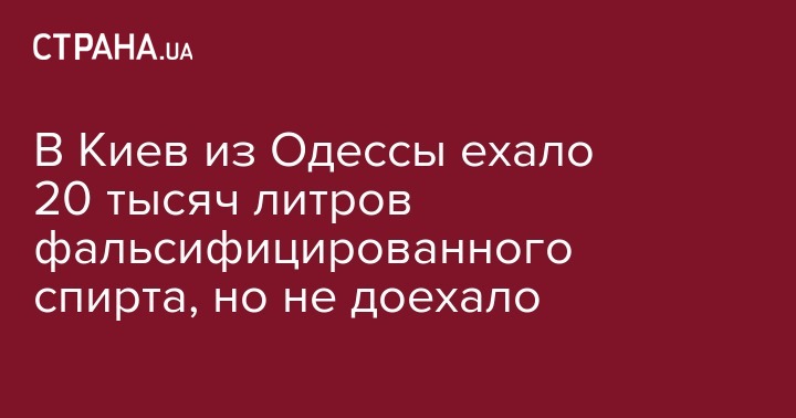 Сотрудники киевской прокуратуры, а также столичного управления ГФС и СБУ задержали грузовой автомобиль, в котором из Одессы в Киев везли почти 20 тысяч литров фальсифицированного спирта. Об этом сообщает пресс-служба прокуратуры Киева.