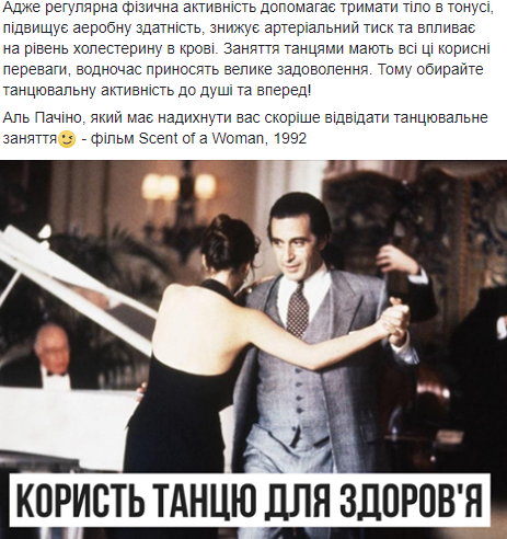 "Мы привыкли отождествлять физическую активность с бегом, тренажерным залом или занятиями определенным видом спорта. Впрочем, есть и физическая активность, которая имеет не худшую пользу для здоровья – занятия танцами. Независимо от того, хотите ли вы двигаться ритмично, в паре или же танцевать медленные танцы – это один из самых приятных способов быть активным", - отметила она.