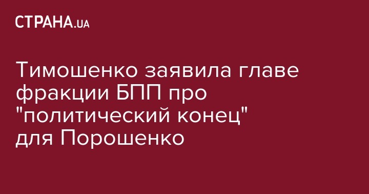 Лидер партии "Батькивщина" Юлия Тимошенко, которая ушла в отрыв от конкурентов за кресло президента, уверена, что выборы президента станут "политическим концом" для нынешнего президента Петра Порошенко и его партии. Об этом она заявила на согласительном совете в парламенте, сообщает "Украинская правда".
