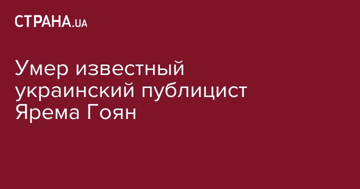 28 сентября в Украине умер известный публицист, журналист, руководитель детского издательства Ярема Гоян. Об этом на своей странице в Facebook сообщил директор издательского центра "Просвита" Василий Кличак.