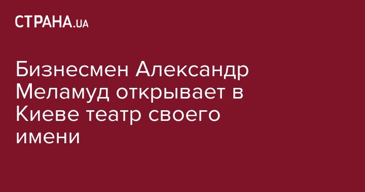 Киевский бизнесмен Александр Меламуд открывает в украинской столице собственный театр, который будет выпускать по 2-3 премьеры в год.