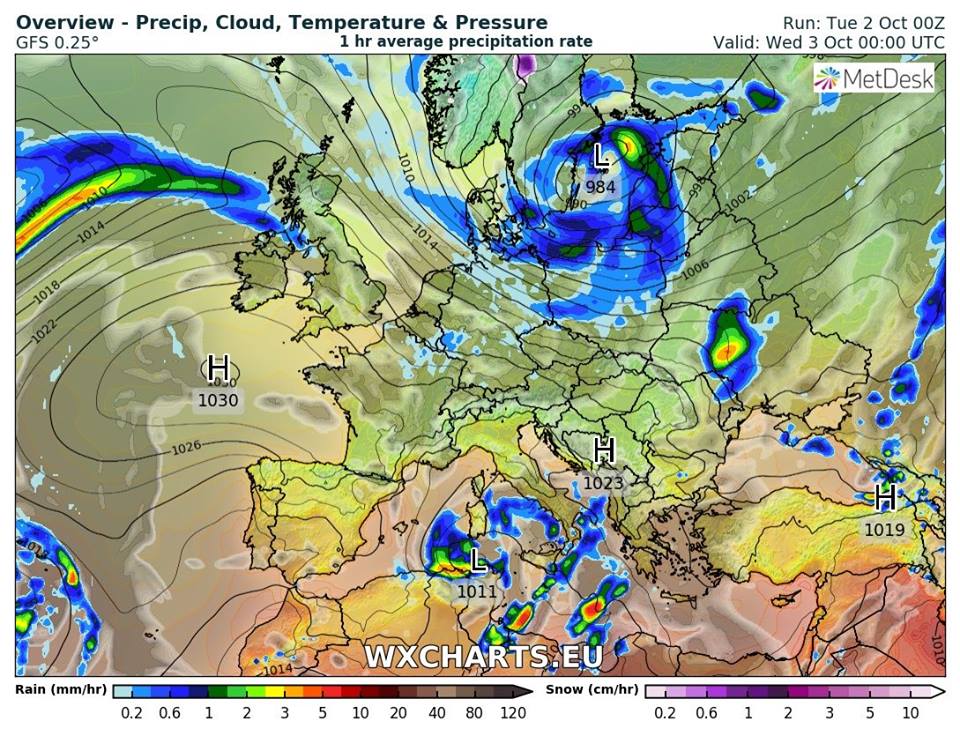 Завтра, 3 октября,  в Украине ожидается дождливая погода с порывистым колючим ветром и контрастом температур в разных областях. Об этом синоптик Наталья Диденко сообщила в Facebook.