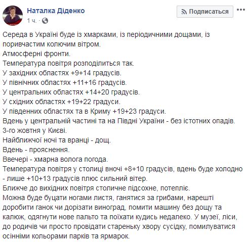 Также читайте о прогнозе погоды на 2 октября. В Украине будет дождливо, но тепло.