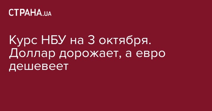 Национальный банк Украины (НБУ) установил официальный курс валют на 3 октября. По сравнению с предыдущим банковским днем, 2 октября, доллар не только наверстал те 6 копеек, на которые подешевел вчера, но и немного подорожал. Об этом свидетельствует курс валют, размещенный на сайте регулятора.