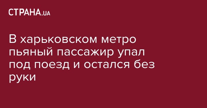 Как сообщает 057.ua со ссылкой на медиков, оказалось, что 52-летний мужчина был пьян. Он застрял между вагонами и упал. После падения он остался жив, но у него ампутирована правая кисть. Также пострадавший получил черепно-мозговую травму.