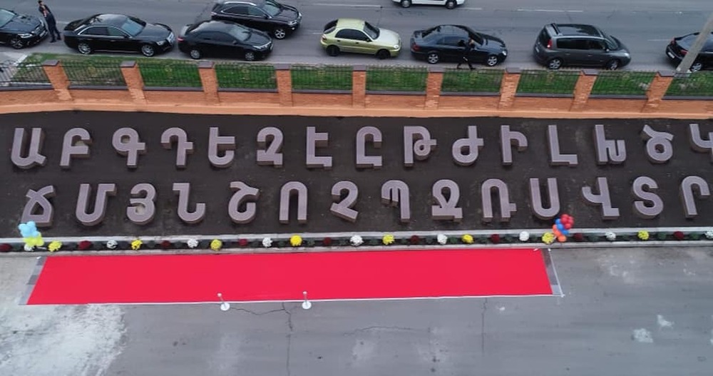 На создание памятника из 36 букв ушло полтора года. Буквы армянского алфавита выполнены из гранита, а высота каждой составляет 1,5 метра.