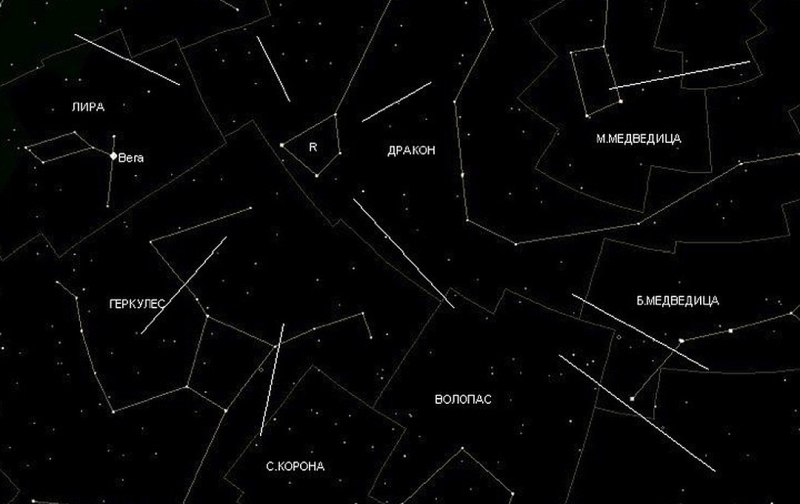 Поток метеоров начался еще 2 октября, но его пик приходится именно на 8-10 октября, то есть на три ночи: с воскресенья на понедельник, с понедельника на вторник и со вторника на среду. Свое название звездопад получили, поскольку если смотреть с нашей планеты, то кажется, что метеоры появляются из точки возле созвездия Дракона. Оно находится чуть левее и выше Большой Медведицы. Именно там, в северо-западной части неба, лучше всего искать метеоры. Оптимальное время - после 22:00.