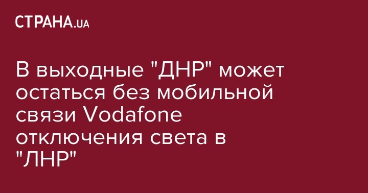 На неподконтрольной украине части Донецкой области - "ДНР" - возможно отсутствие мобильной связи украинского оператора Vodafone в связи с проведением ремонтных работ на подстанции "Победа 500 кВт"в Луганской области (неподконтрольный украинским властям район). Об этом пишет издание "Новости Донбасса" со ссылкой на пресс-службу "министерства связи ДНР".