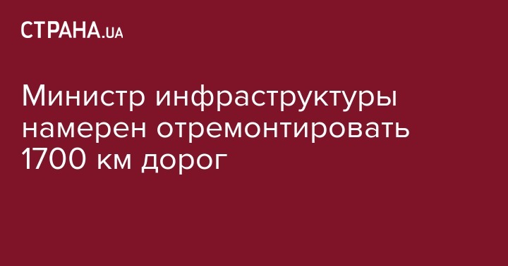 Министр инфраструктуры намерен отремонтировать 1700 км дорог