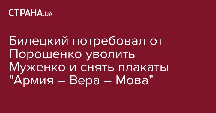 Билецкий потребовал от Порошенко уволить Муженко и снять плакаты "Армия – Вера – Мова"