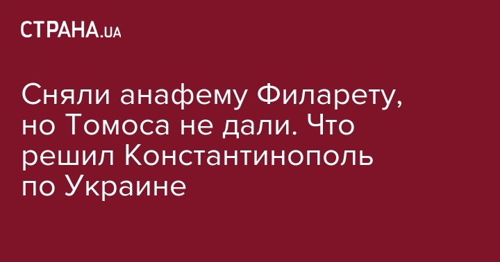 Сняли анафему Филарету, но Томоса не дали. Что решил Константинополь по Украине