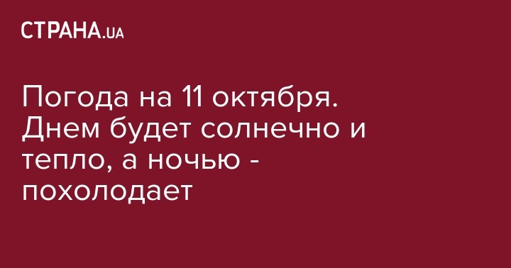 Сегодня, 11 октября, в Украине ожидается солнечная, сухая погода, днем температура будет доходить до +22 градусов. Об этом сообщает сайт Укргидрометцентра.