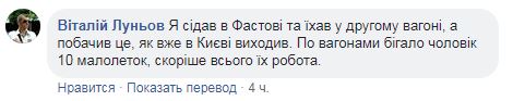 Кстати, "Укрзализныця" опубликовала эту информацию после того как в соцсетях появились снимки разгромленного вагона. Один из пассажиров электрички пишет, что скорее всего, это дело рук подростков. Виталий Лунев сообщет: "Я садился в Фастове и ехал во втором вагоне, а увидел это, как уже в Киеве выходил. По вагонам бегало человек 10 малолеток, скорей всего их работа".
