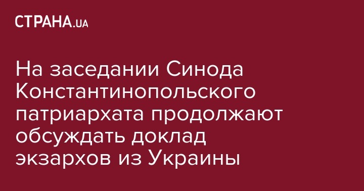В Стамбуле продолжается заседание Синода Константинопольского патриархата, на котором сейчас, по последней информации, обсуждают отчет экзархов Вселенского патриарха  в рамках подготовки к предоставлению автокефалии Украинской православной церкви, сообщает УНН.