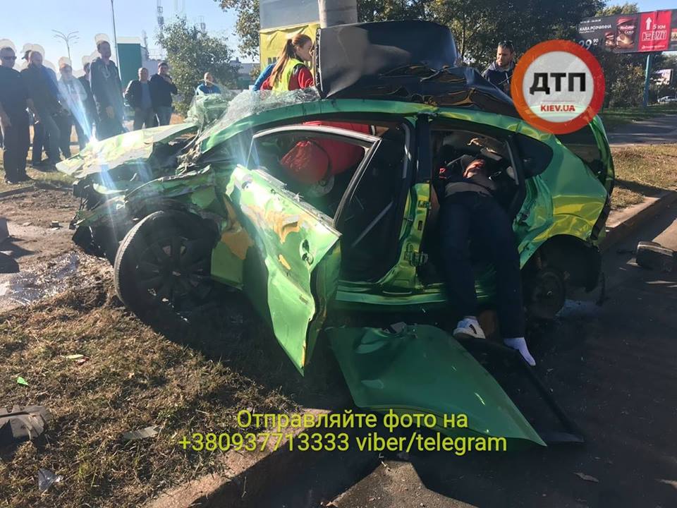 В Киеве авто от удара в столб разорвало на части. Есть погибшие