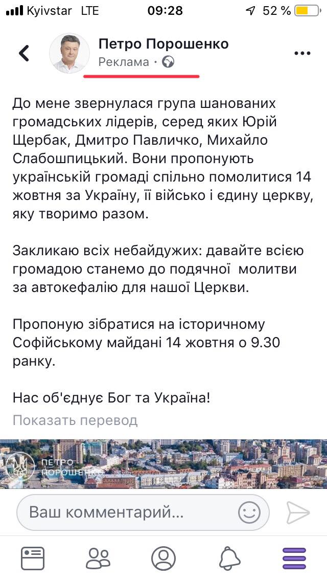10:21  Команда Порошенко продолжает продвигать за деньги посты о Томосе.