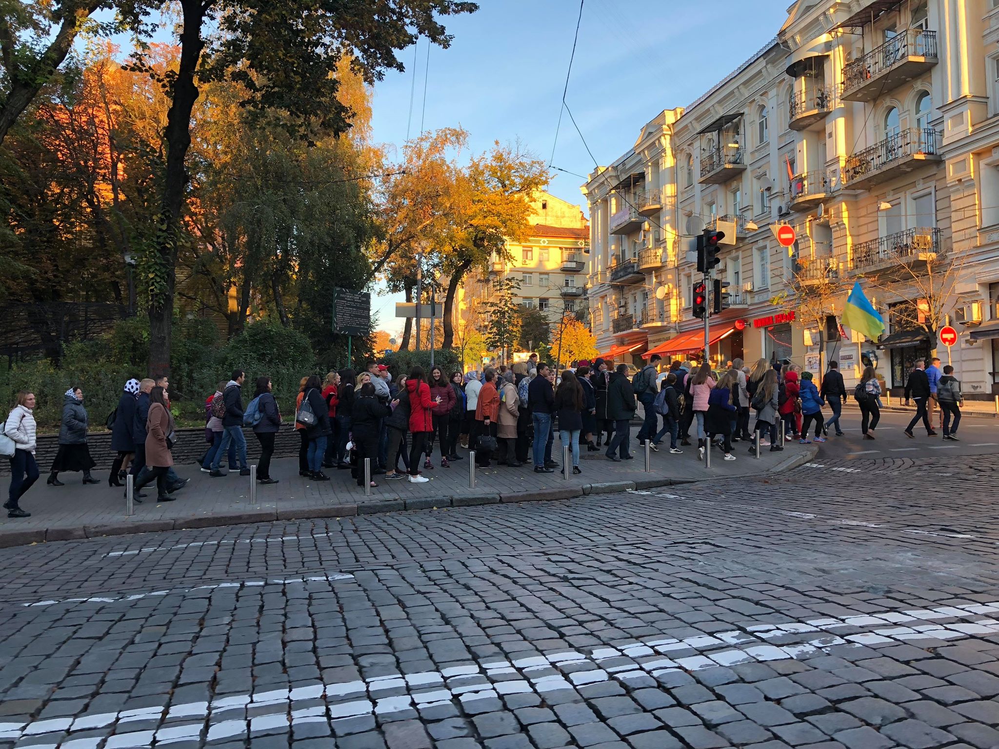 8:45  Многие организованными группами под флагами Украины уже движутся на место молебна.