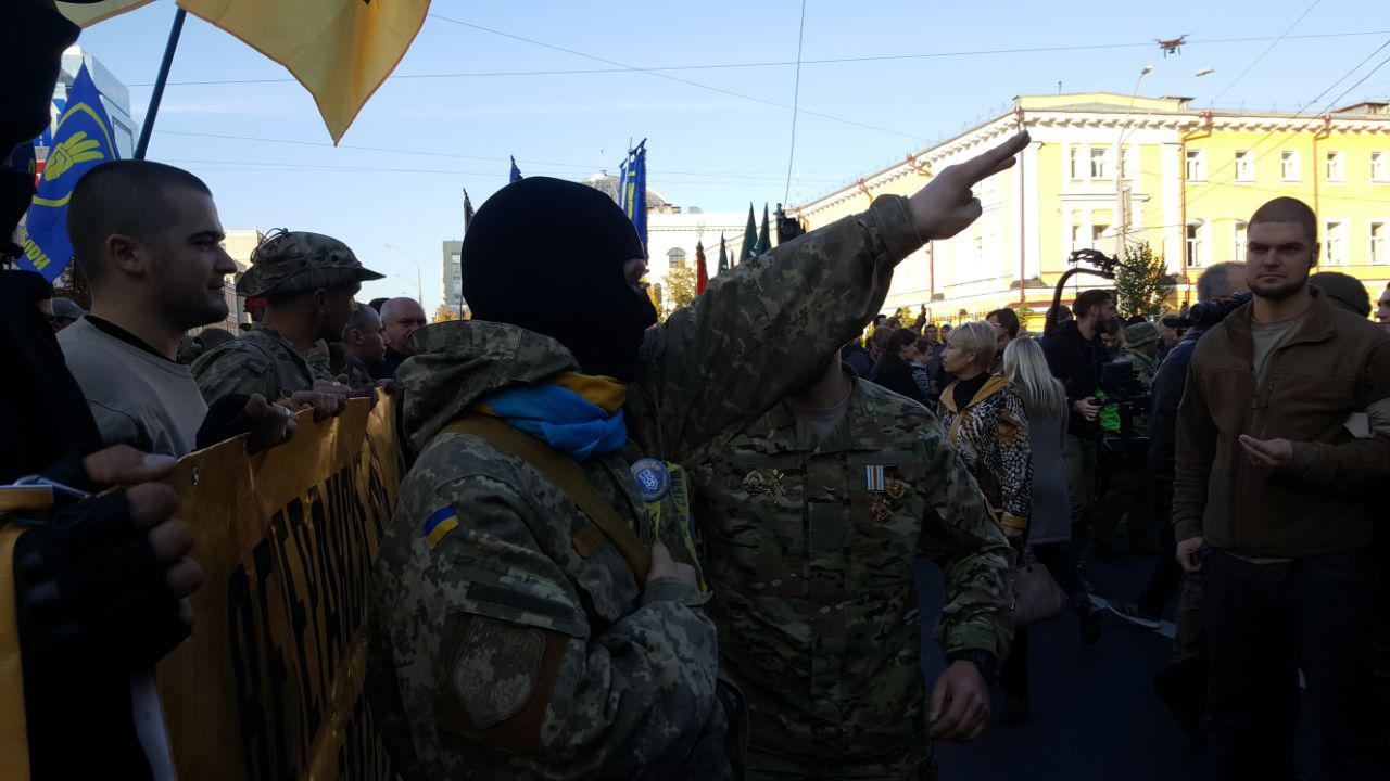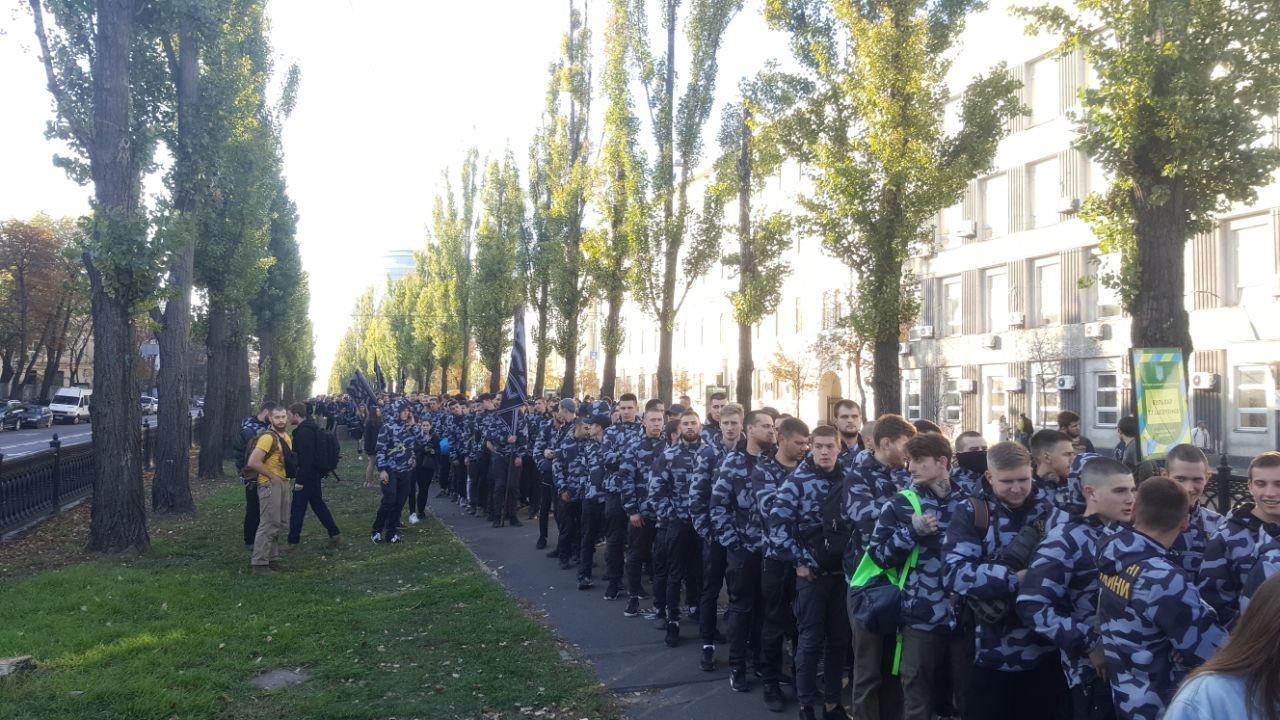 16:07  К колонне присоединятся ещё пять сотен активистов Нацкорпуса. Еще сотни три нацдружинников ждут их на бульваре Шевченко.