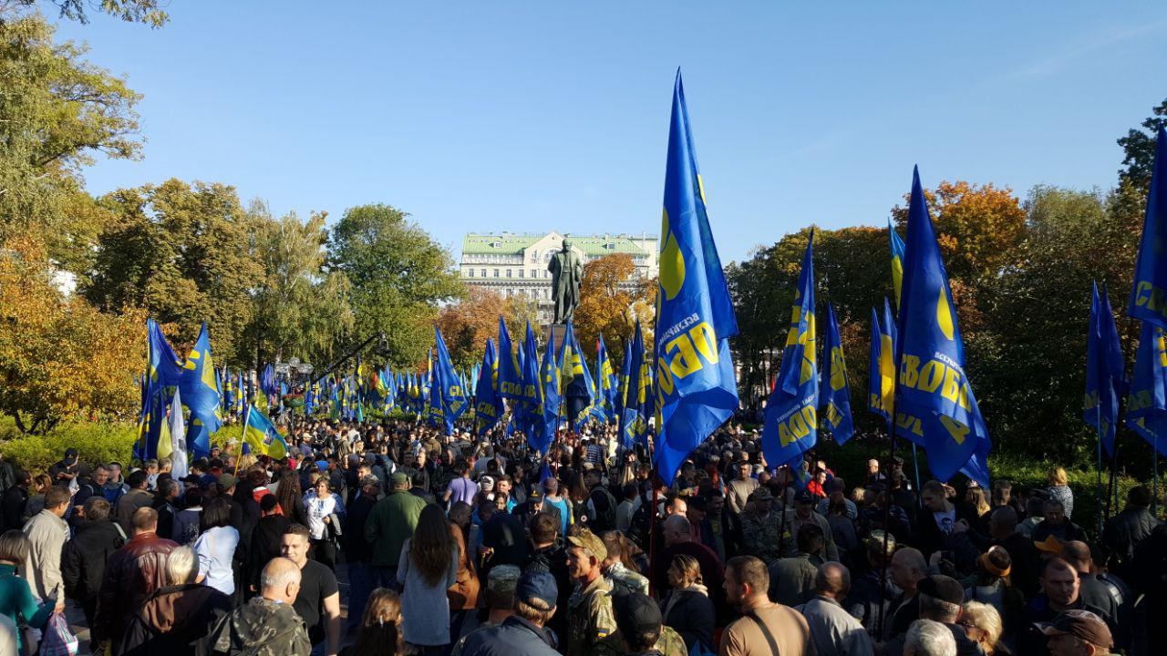 11:55  После неудачи у памятника №1 Коханивский в громкоговоритель заявил, что теперь идут к монументу Ватутину в этом же парке.