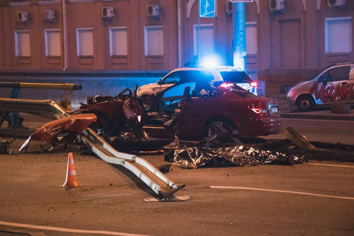 Mercedes AMG на большой скорости влетел в отбойник на улице Набережно-Крещатицкая. Известно, что авто ехало в направлении Речного вокзала. По предварительным данным, водитель не справился с управлением и влетел в железную конструкцию отбойника.