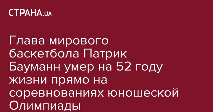 Глава мирового баскетбола Патрик Бауманн умер на 52 году жизни прямо на соревнованиях юношеской Олимпиады