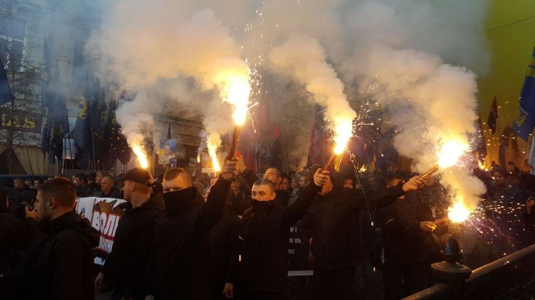 Правда, под конец дня группа радикалов из С14 отправилась побросать камни в офис "Украинского выбора" Виктора Медведчука, но после пары кричалок быстро ретировались.
