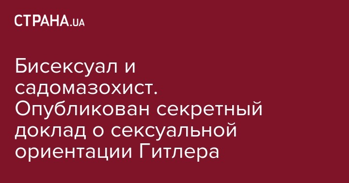 Фюрер нацистской Германии Адольф Гитлер имел садомазохистские наклонности, кроме того сочетал в себе гомосексуальную и гетеросексуальную ориентации. Об этом со ссылкой на Daily Star пишет ABC.