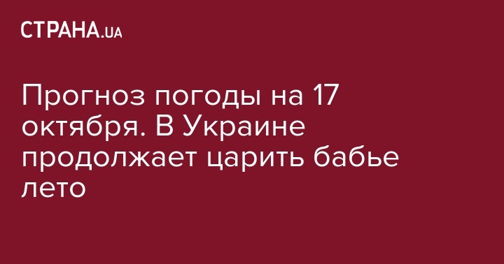 Сегодня, 17 октября, в Украине будет тепло и солнечно - продолжается бабье лето. Об этом сообщает Укргидрометцентр.