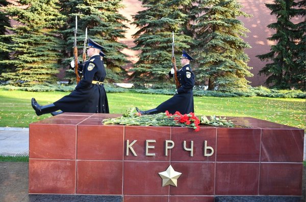 16.54 Корреспондент "Комсомольской правды" Александр Коц опубликовал фото первых цветов, принесенных к памятнику в Керчи в Александровском саду возле Кремля.