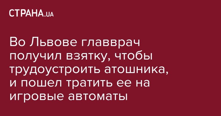 Во Львове главврач получил взятку, чтобы трудоустроить атошника, и пошел тратить ее на игровые автоматы