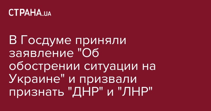 В Госдуме приняли заявление "Об обострении ситуации на Украине" и призвали признать "ДНР" и "ЛНР"