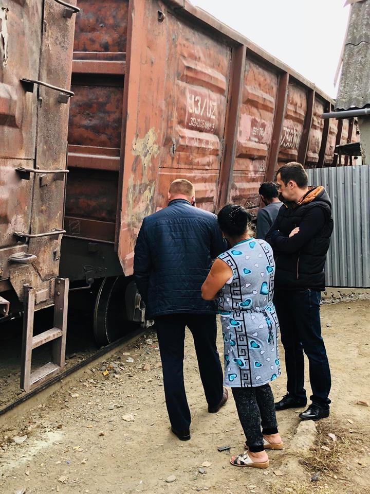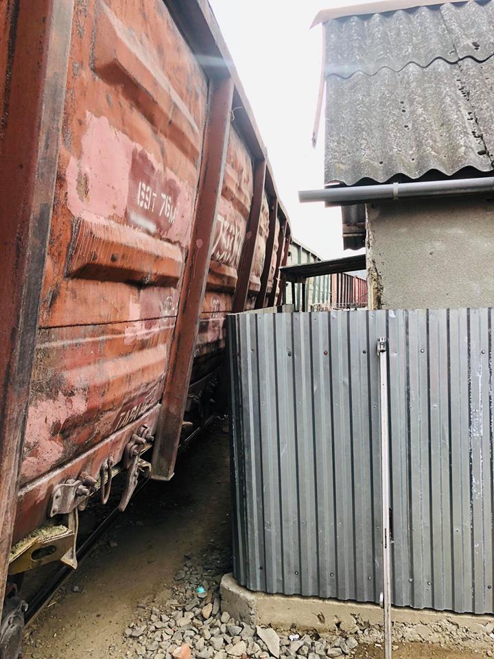В Ужгороде в ромском микрорайоне Радванка частично сошел с рельсов грузовой поезд. Вагоны наклонились на жилой дом.