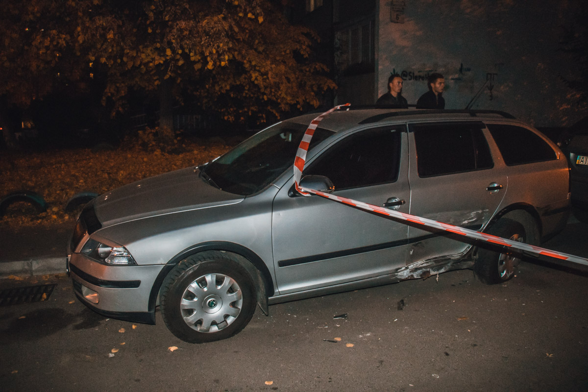 В Киеве пьяный водитель протаранил машины и устроил разборки. Его авто перевернулось на крышу