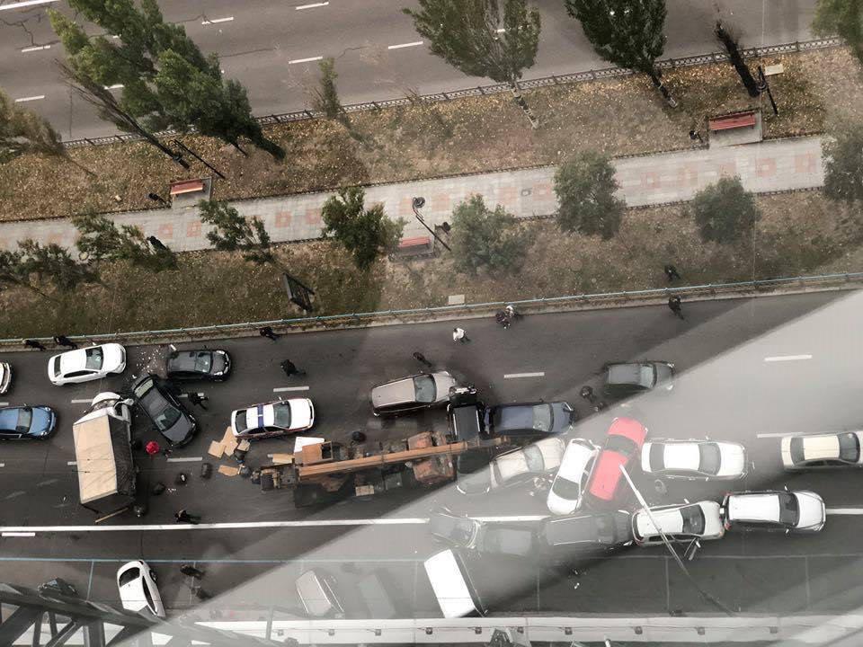 Сегодня, 23 октября, около 09:00 на бульваре Леси Украинки в Киеве произошло масштабное ДТП. Его спровоцировал автокран, который смял 17 автомобилей. Об этом сообщает отдел коммуникации ГУ НП в Киеве.