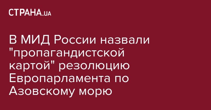 В МИД России назвали "пропагандистской картой" резолюцию Европарламента по Азовскому морю