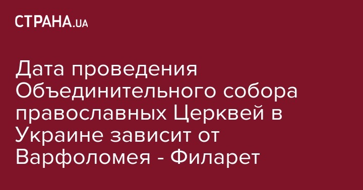 Дата проведения Объединительного собора православных Церквей в Украине зависит от Варфоломея - Филарет