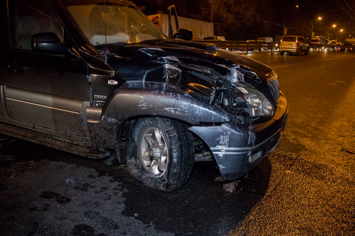Авария произошла вечером 26 октября на Одесской трассе на въезде в столицу. Очевидцы ДТП сообщают, что женщина-водитель с пассажиром на внедорожнике Hyundai Terracan на большой скорости ехали по Одесской трассе в сторону Киева. Возле КПП при въезде в столицу Hyundai влетел в стоящую на светофоре Toyota Corolla. От удара внедорожник занесло, он врезался в отбойник, который зацепил маршрутку "Киев — Умань с пассажирами в салоне.