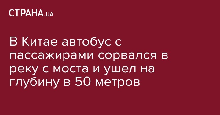 Автобус с пассажирами рухнул в реку с 60-метрового моста, после чего погрузился под воду на глубину около 50 метров. Происшествие случилось около 10.00 по местному времени на юго-западе Китая в городе Чунцин.
