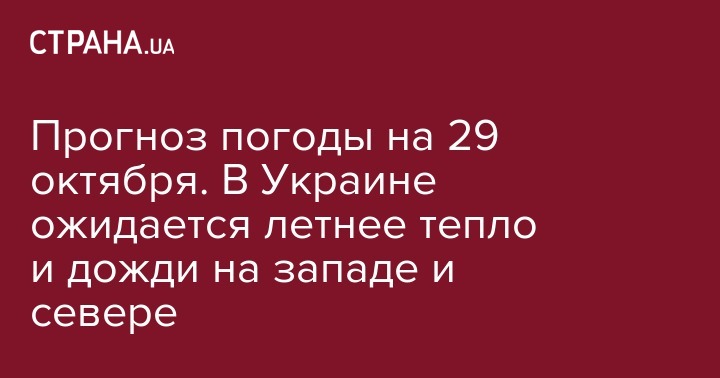 Прогноз погоды на 29 октября. В Украине ожидается летнее тепло и дожди на западе и севере