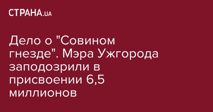 В ходе досудебного расследования установлено, что в результате противоправных действий мэра Ужгорода из местного бюджета незаконно в качестве оплаты за невыполненные работы и неиспользованные строительные материалы, было перечислено более 6,5 млн грн, выделенных на реконструкцию памятника архитектуры национального значения "Амбар и винный погреб XVII века", известный как "Совиное гнездо".