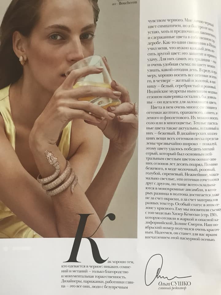 Но на днях в Сети разгорелся скандал – главного редактора журнала обвинили в плагиате. Как стало известно, колонки Ольги Сушко стали точными копиями материалов российского журнала Harper’s Bazaar многолетней давности.