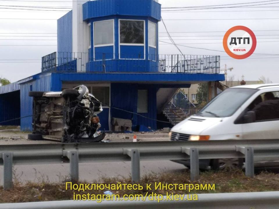 Сегодня, 2 ноября, на выезде из Киева водитель автомобиля на высокой скорости врезался в бывший пост ГАИ. Об этом говорится в сообщении на странице dtp.kiev.ua в Facebook.
