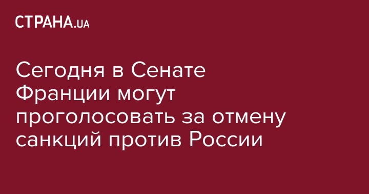 Сегодня в Сенате Франции намечено голосование за резолюцию об отмене правительством страны санкций против России. Сообщение об этом опубликовано на сайте Сената.