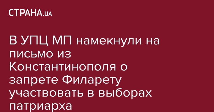 В УПЦ МП намекнули на письмо из Константинополя о запрете Филарету участвовать в выборах патриарха