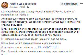 "В то время как билетные операторы соревнуются за возможность продавать билеты и максимально интегрировать сервис, в то время как есть Приват 24 со своими сервисами кто-то берет и выбрасывает 21 лям гривен.