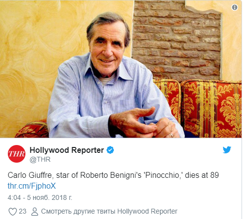Артист умер 1 ноября в своем доме. Смерть наступила после продолжительной болезни, однако известно об этом стало только сегодня. Джуффре родился в 1928 году в Неаполе. Первой его крупной работой в карьере стал фильм "Девушка с пистолетом" 1968 года. Картина прославила актера и номинировалась на премию "Оскар" как лучший фильм на иностранном языке.