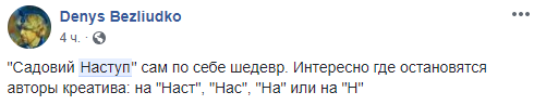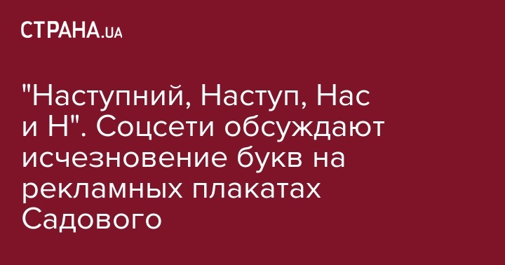 Задумку политтехнологов превратили в креативные фотожабы в соцсетях. "Садовый Наступ сам по себе шедевр. Интересно, где остановятся авторы креатива: на "Наст", "Нас", "На" или на "Н", - иронизируют в социальных сетях.