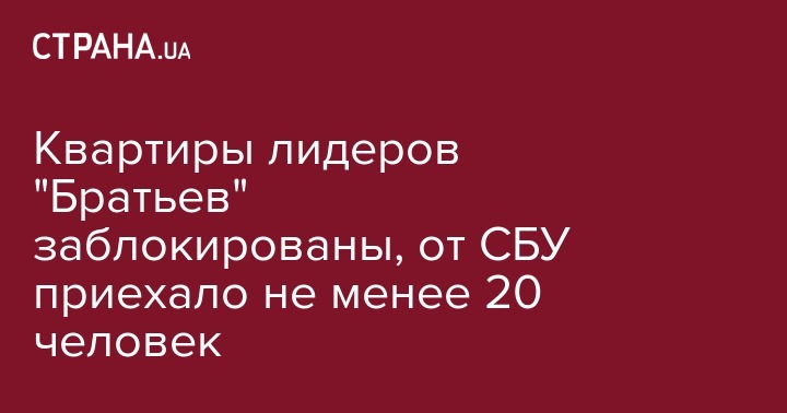 Стали известны подробности обыска, который СБУ проводит у лидеров общественной организации "Братья" Александра Сухарского и Александра Негоды. Около 07:00 -07:20 утра в квартиру Негоды, где находились его жена и двое несовершеннолетних детей, вошли представители СБУ и "непонятные люди в форме" и заблокировали жилье.