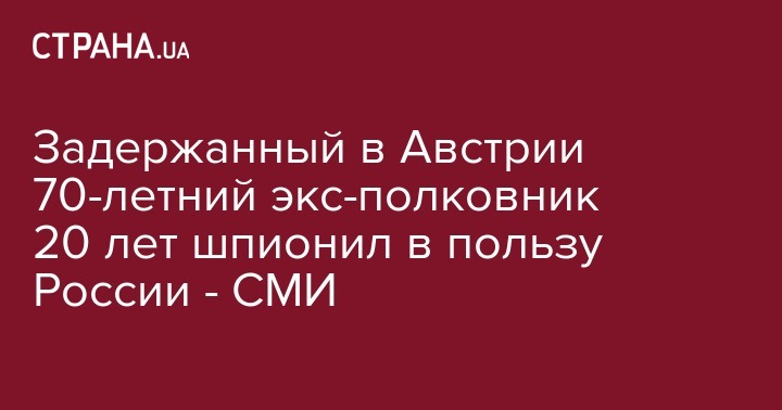 Отставной офицер вооруженных сил Австрии из Зальцбурга с 90-х годов до 2018 сотрудничал с российской разведкой. Его задержали местные правоохранительные органы по подозрению в шпионаже, позже он признался в незаконной деятельности. Об этом сообщает Die Presse.
