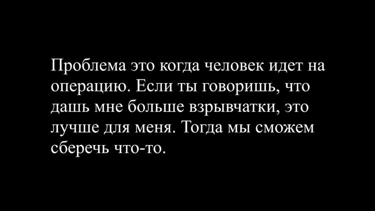 Говоря о подрыве машины, он поясняет: "Можно сломать за один раз 2, еще один раз 1, еще за раз 3, иногда 1, а намного лучше – сломать 30, но сразу, это лучше. 30 одновременно. Это будет более эффективно. Лучше 30 сразу, чем 100 по одной".